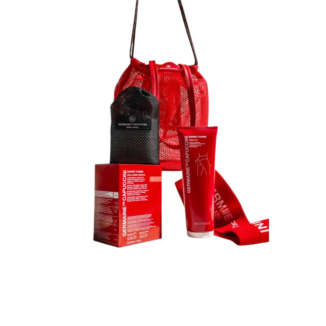 Tai namų naudojimui skirta kūno formavimo ir stangrinimo programa, padedanti palaikyti profesionalių procedūrų rezultatus ir skatinti sveikesnį gyvenimo būdą. Programa apjungia anticeliulitines priemones ir fizinį aktyvumą, siekiant pagerinti odos būklę, sumažinti skysčių kaupimąsi ir palaikyti puikias kūno formas. Rinkinį sudaro: Maisto papildas miltelių pavidalu (pakeliuose), tirpstantis vandenyje ir padedantis sumažinti sunkumo jausmą. Su nauja formule ir gaiviu obuolių skoniu – tai idealus pasirinkimas tiems, kurie kasdien siekia lengvumo ir geros savijautos., kūno serumas, masažo gelis, priedai: elastinės juostos, krepšys rinkinio laikymui.