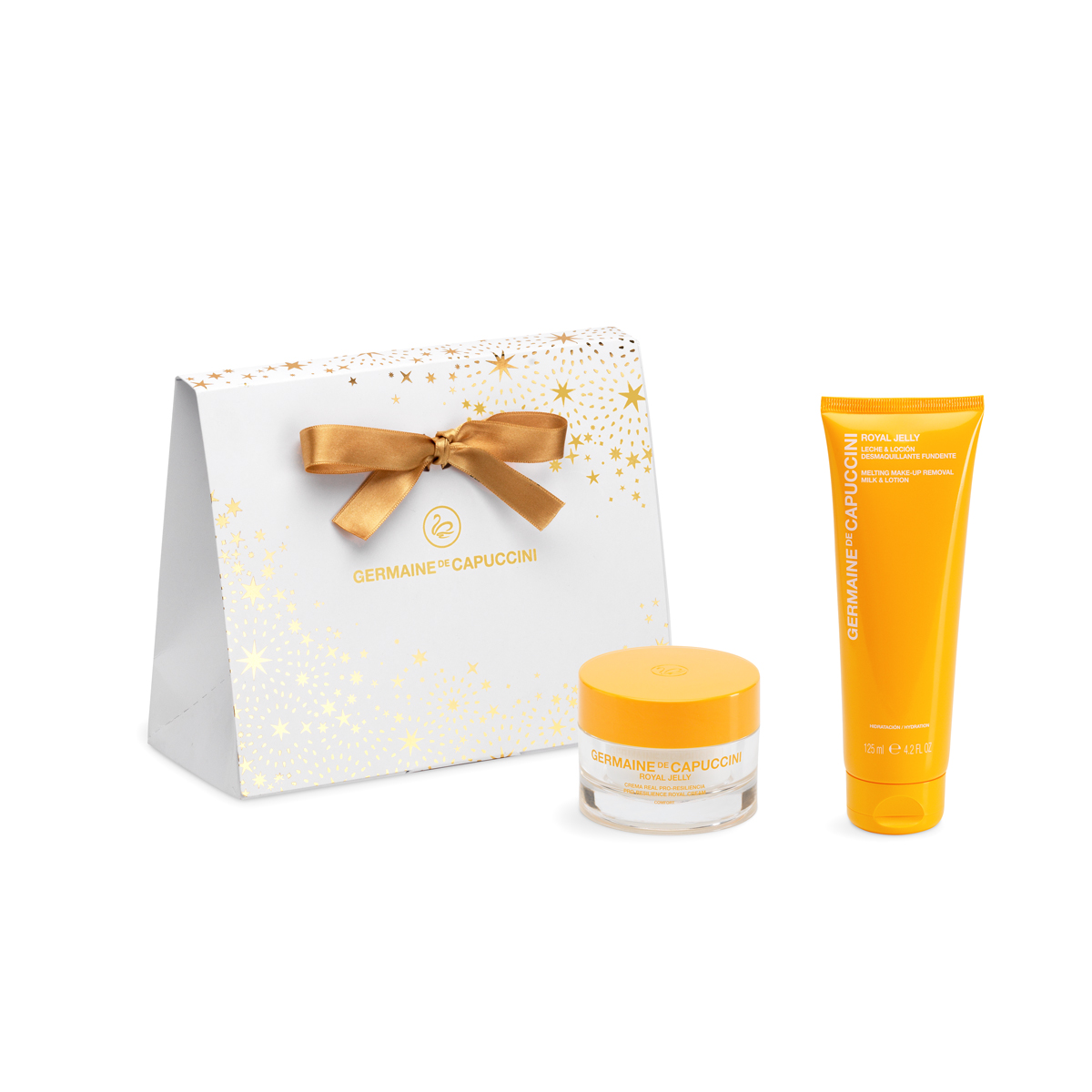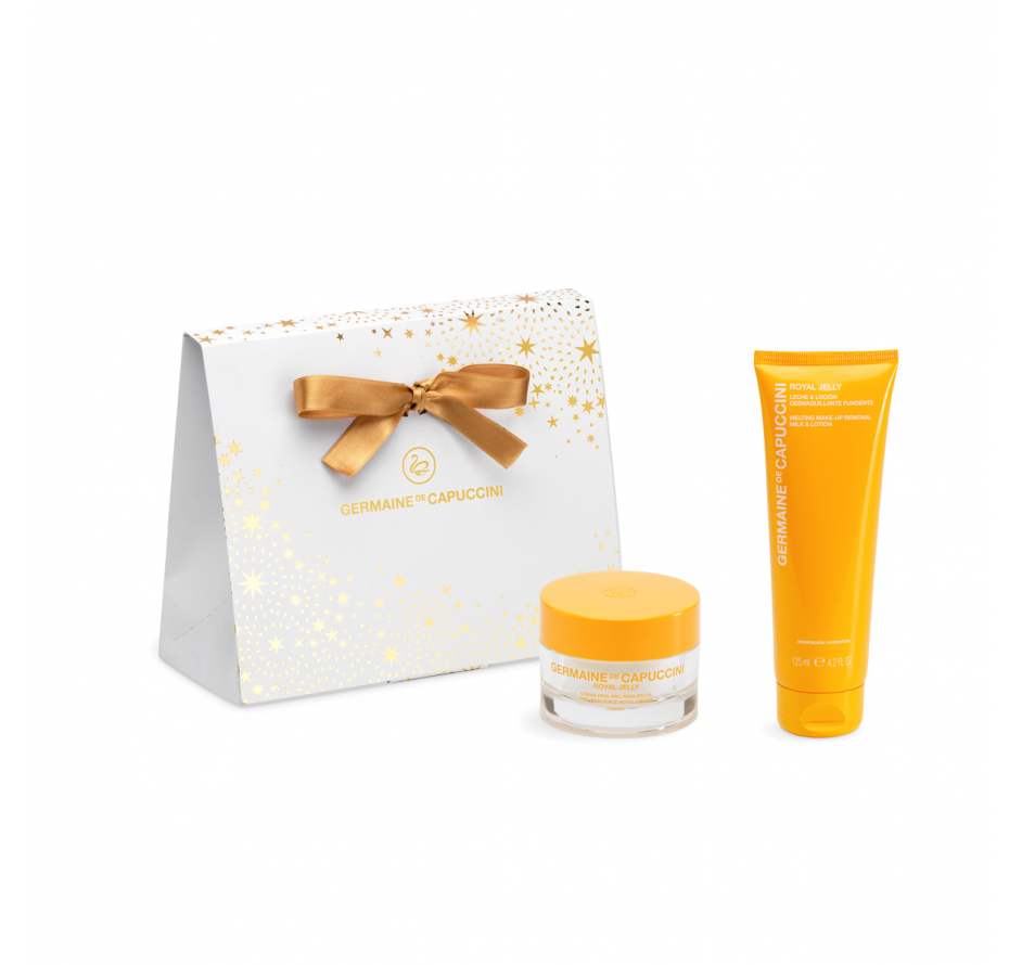 • Germaine de Capuccini Kalėdinis rinkinys MOMENTS (ROYAL JELLY MELTING makiažo šalinimo pienelis ir losjonas + ROYAL JELLY kremas sausai ar itin sausai odai Comfort + dovanų - kosmetinė) 125 ml + 50 ml